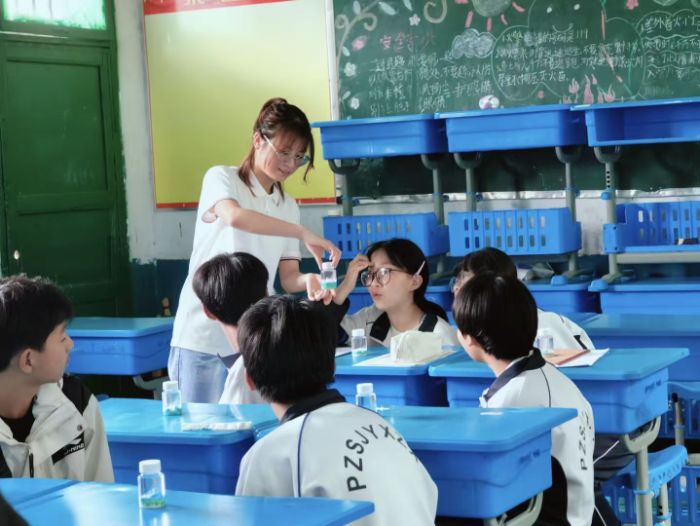 面對性格內(nèi)向的學(xué)生,志愿者采取“一對一”輔導(dǎo)模式:從鼓勵他們回答“這個實驗現(xiàn)象是什么顏色”這類簡單問題入手,逐步引導(dǎo)其參與小組討論,幫助他們克服膽怯、建立自信;對于活潑好動的學(xué)生,志愿者則為其分配“教具管理員”“小組領(lǐng)隊”等角色,將他們的精力轉(zhuǎn)化為課堂互動的推動力,讓每個學(xué)生都能在課堂中找到自己的“閃光點”。