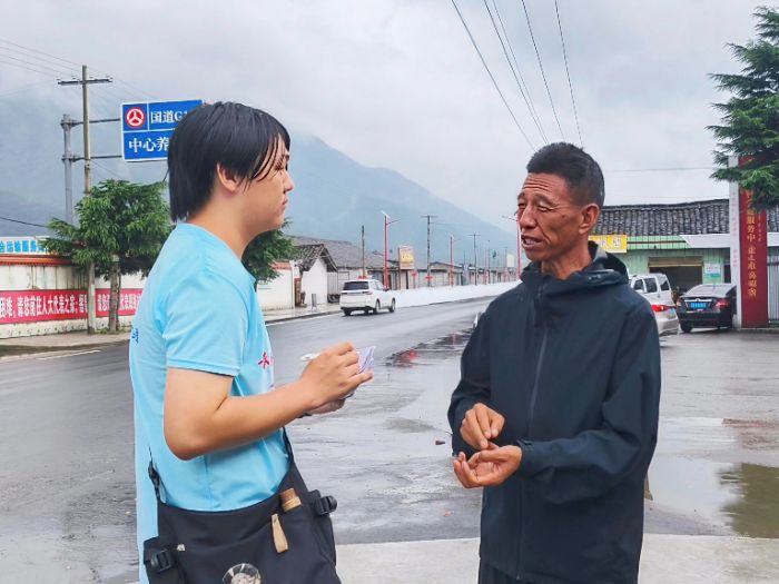 圖為實踐團成員向彝海鎮村民科普災害避險知識