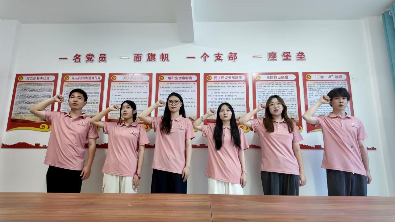 實踐團抵達清貧園后,在清貧碑前集體朗誦了方志敏的《清貧》全文和實踐團的原創詩歌《清貧的信仰》,生動歌頌了他“潔白樸素的生活”,深刻感悟了革命時期信仰選擇的崇高。隨后,實踐團前往玉峰村黨群服務中心,在黨旗前莊重宣誓,重溫入黨誓詞。在誓言的回響中,實踐團成員們更加堅定了“為中國人民謀幸福,為中華民族謀復興”的初心與使命。