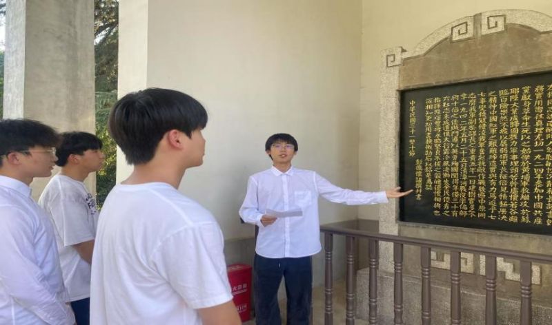 7月9日,實踐團赴毛主席視察成安紀念館,開展社會實踐活動。實踐團成員站在毛主席視察成安紀念館的展示墻前,目光堅定,神情專注,向參觀者講述著那段珍貴歷史背后蘊含的偉大建黨精神。