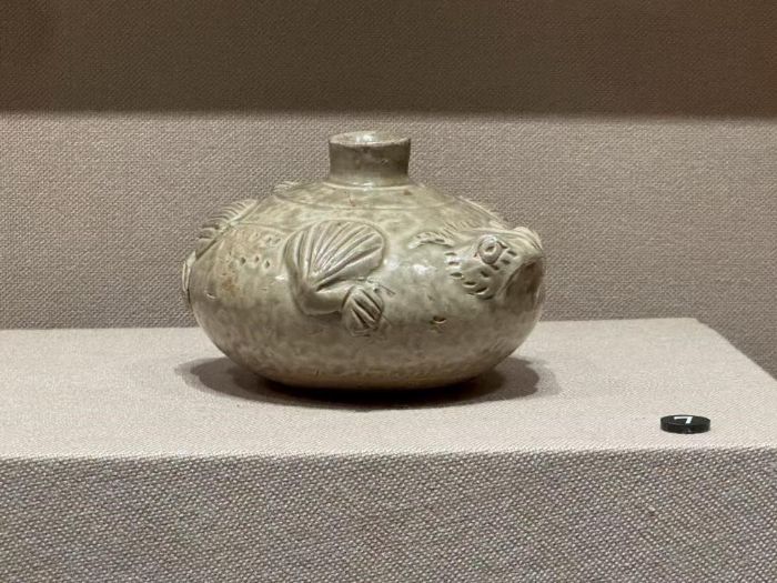 這件瓷器呈現出獨特的藍綠色,是在燒制過程中窯內溫度發生變化,釉料中的金屬氧化物發生復雜的化學反應而成,造型小巧,可能是用于傾倒液體的生活器具。
