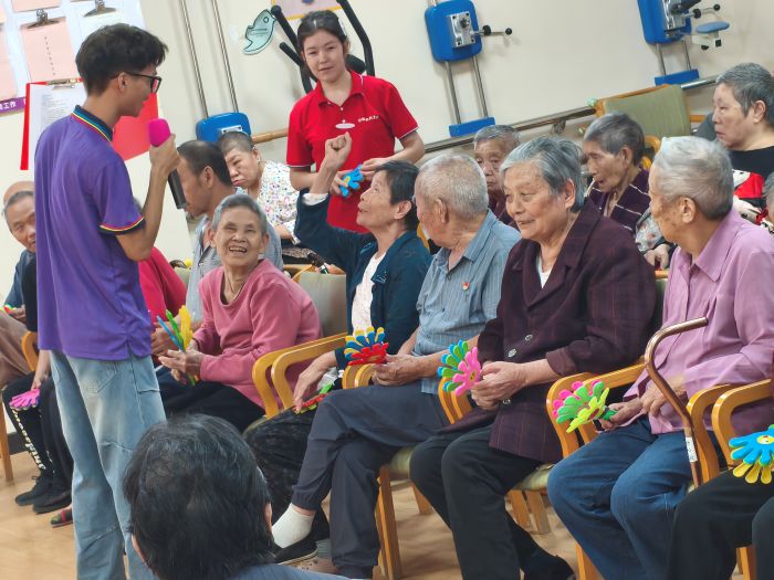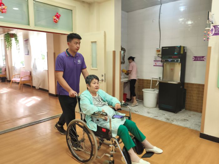 6 月 22 日,實踐隊全體成員分組行動,深入老人房間開展 “生活服務”。有的隊員拿起掃帚、抹布,仔細清掃地面灰塵,擦拭門窗、家具上的污漬,將老人的房間整理得干凈整潔;有的隊員主動詢問老人的生活需求,為行動不便的老人代購生活用品、幫忙送餐到房間;還有隊員陪著老人散步,陪他們嘮家常,緩解老人的孤獨感。隊員王健看到一位老人的衣物擺放雜亂,便主動幫忙分類整理,并將常穿的衣服放在方便拿取的位置;隊員張文裕發現一位老人行動不便,每天都會準時將熱騰騰的飯菜送到老人手中。“這些孩子就像自家晚輩一樣貼心,幫我們打掃房間、送飯菜,心里特別暖和。” 老人們的夸贊,成為隊員們最溫暖的動力。