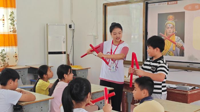 圖為流墨實踐服務隊李淑玲上課。通訊員 李淑玲 供圖