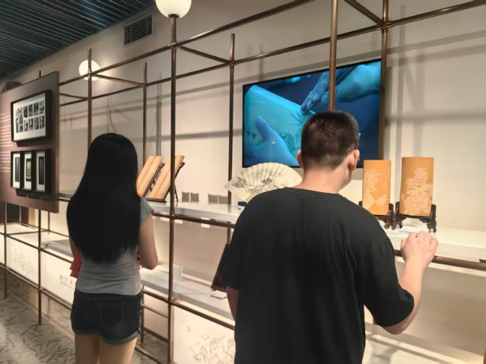 7月10日,團(tuán)隊再次來到中國泥人博物館,計劃在博物館的“錫作苑——竹鏤文心”展區(qū)開展隨機(jī)采訪活動,通過精心準(zhǔn)備的問題,調(diào)查無錫當(dāng)?shù)厝藢τ诹羟嘀窨态F(xiàn)狀與傳承的理解。