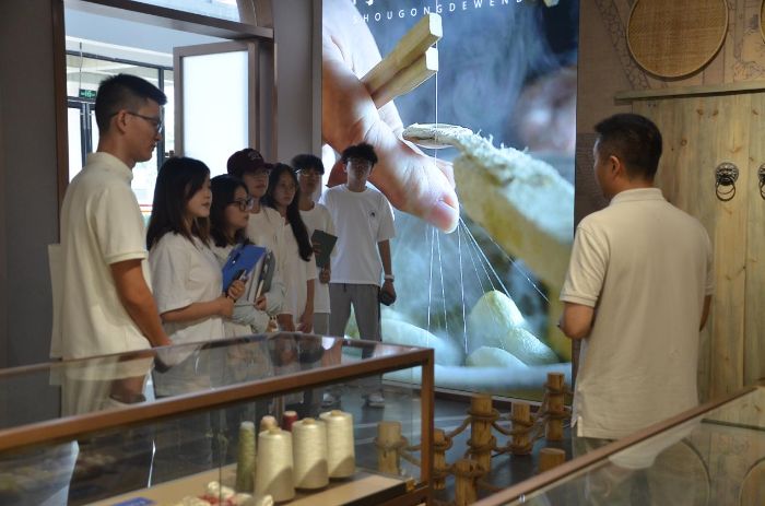 在絲綢公司,同學們走進蠶桑文化館,聆聽絲綢歷史講解,欣賞精美絲綢制品,體驗非遺技藝的傳承與創新。公司還展示了其人才公寓和員工福利,體現出企業對人才引進的重視與投入。