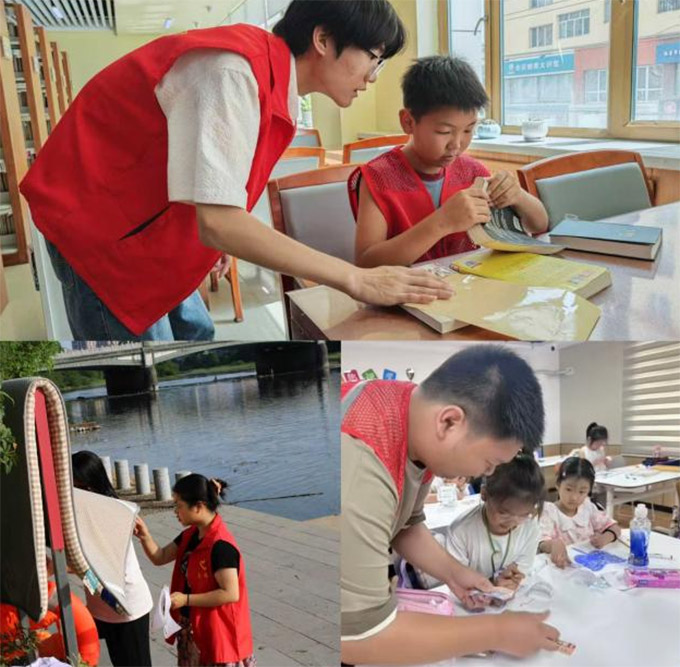 社區及政務實踐組:扎根基層,服務群眾顯擔當 社區志愿服務中,各地學子各展所長。7月14日至7月31日,王良同學在黑龍江省七臺河市勃利縣圖書館創新開展實踐活動,通過培訓兒童志愿者、設立“兒童督導員”制度及圖書導航工作臺等舉措,以兒童為紐帶帶動家庭了解圖書館,充分發揮圖書館的公共服務作用。7月15日至8月20日,劉喆喆同學在廣西桂林市靈川縣靈川鎮城西社區參與衛生與文化活動,提醒居民注重環境保護,制止焚燒秸稈、亂扔垃圾等行為。7月14日至8月1日,吳偉豪同學在陜西省咸陽市渭城區人民路街道辦社區擔任愛心托管志愿者,開展兒童心理溝通、安全急救及陪伴活動,帶領孩子們體驗非遺手工與科學實驗。