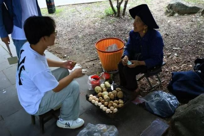 實踐團抵達彝海景區,并在彝海結盟紀念碑前合影留念,正式開啟實地調研。隊員們分別訪問了對越自衛反擊戰老兵游客、本地及其他地區游客。調研發現,景區游客大多來自周邊區域,除老兵與部分年長游客受紅色文化吸引而來外,多數人因彝海的自然景觀慕名而至。團隊還與景區內售賣食品的本地彝族居民交流,深刻感受到彝族同胞的熱情好客。