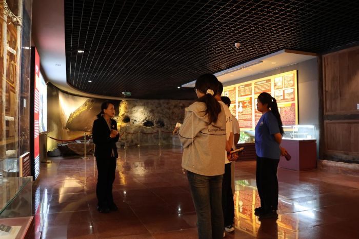 圖為團(tuán)隊(duì)成員在紀(jì)念館內(nèi)聆聽(tīng)講解后與館長(zhǎng)進(jìn)行交流。冉浩文供圖