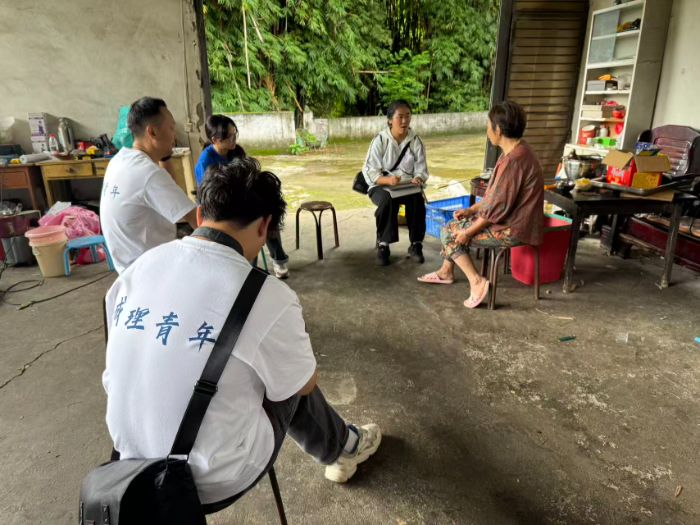 圖為團隊成員與;瞎ぷ魅藛T進行訪談。馮博供圖
