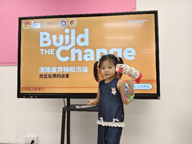 第二堂課圍繞“消除廢棄物與污染”展開。通過“最討厭的廢棄物”投票互動,引發(fā)小朋友們對塑料瓶、廢電池、剩飯菜等垃圾問題的思考。志愿者介紹了“光盤行動”“剩菜堆肥”等實(shí)用環(huán)保技巧,并借助趣味動畫和“惜食魔法袋”教具,強(qiáng)化珍惜糧食的意識。小朋友們還利用廢舊塑料瓶、紙杯等創(chuàng)作出一個個生態(tài)主題藝術(shù)裝置,在實(shí)踐中理解環(huán)保與美學(xué)的結(jié)合。四歲的宸寶舉著自制的“紙杯小魚”興奮地說:“垃圾也能變寶貝!”