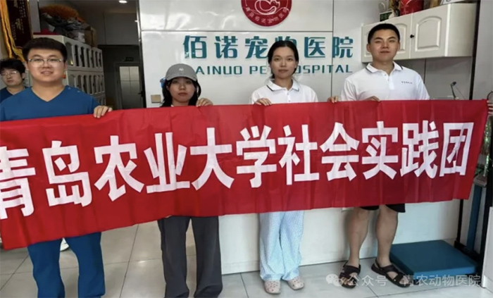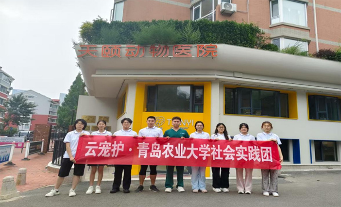實踐服務團師生在青島農業大學動物醫院前合影 劉含笑 供圖