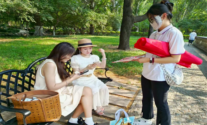 實踐服務團前往濰坊人民公園進行宣傳科普工作 孫儷珺 供圖