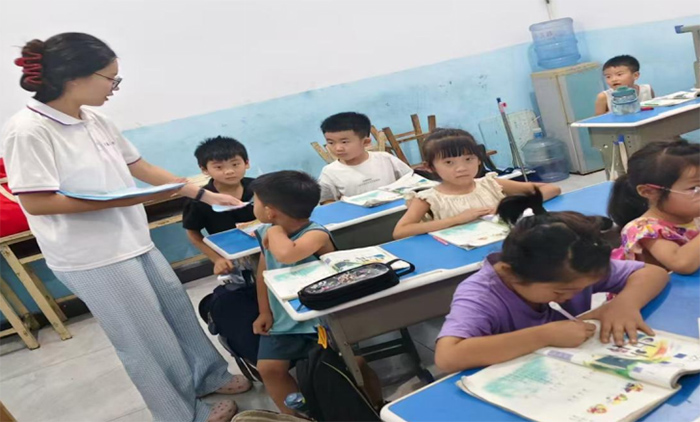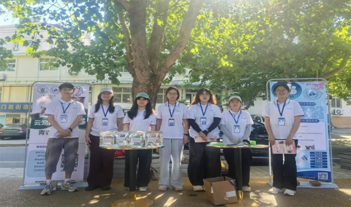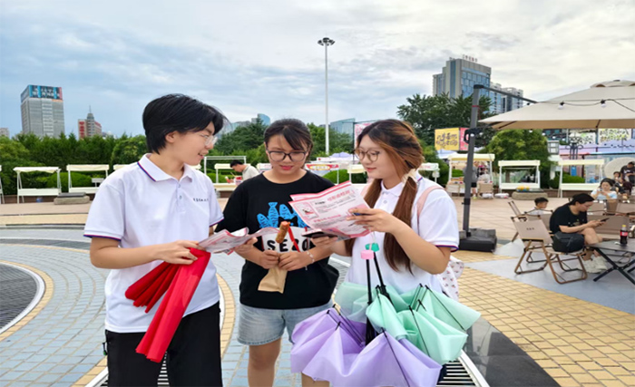 實踐服務團為各年齡段學生學生發放宣傳科普資料 劉含笑 供圖