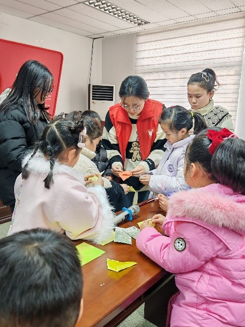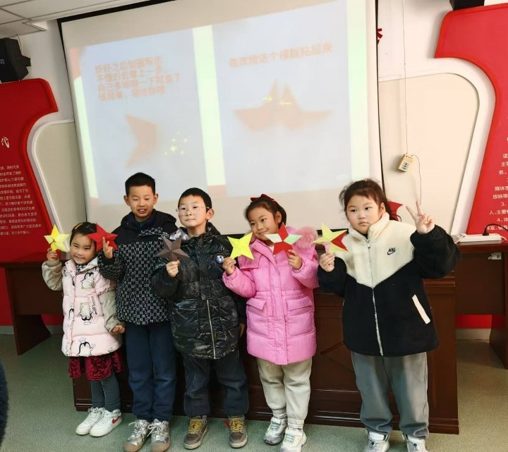為了讓大家更好地感受遵義精神,增強(qiáng)互動(dòng)體驗(yàn),宣講團(tuán)精心設(shè)計(jì)了多個(gè)有趣的互動(dòng)環(huán)節(jié)。在折五角星環(huán)節(jié),志愿者們向社區(qū)成員分發(fā)彩紙,并耐心指導(dǎo)大家折五角星。大家紛紛動(dòng)手,不一會(huì)兒,一顆顆鮮艷的五角星便在手中誕生。小小的五角星,不僅是手工成果,更象征著對(duì)革命先輩的崇敬和對(duì)紅色精神的傳承。