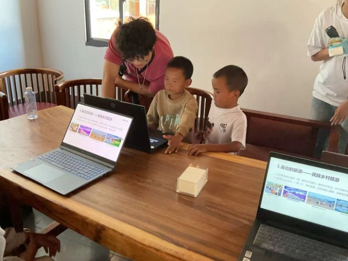 講座過程中,孩子們的熱情被充分點燃。每當余老師提出問題,無論是“你們知道家鄉有哪些紅色故事嗎?”還是“誰能說說過火把節時的熱鬧場景?”,孩子們都會高高舉起小手,爭先恐后地回答。有的孩子站起身,認真講述著爺爺曾告訴自己的紅色往事;有的孩子興奮地分享起火把節時和小伙伴一起唱歌跳舞、品嘗美食的快樂經歷,稚嫩的話語中滿是對家鄉的熱愛。當聽到余老師說“家鄉的山水和文化這么美,將來會有更多遠方的客人來這里旅游,你們都是家鄉的小宣傳員”時,孩子們的眼睛瞬間亮了起來,臉上寫滿了自豪與驚喜,小小的胸膛也不由自主地挺了起來,仿佛已經肩負起了向外界介紹家鄉的重任。在一次次生動的講解與熱烈的互動中,旅游的種子不知不覺在孩子們心中扎下了根。余老師還親切地勉勵孩子們:“現在要好好讀書,增長知識,將來不僅能用腳步去丈量遠方的世界,更能用智慧建設家鄉,把涼山的美麗風光和動人故事講給更多人聽,讓更多人了解這片可愛的土地。”