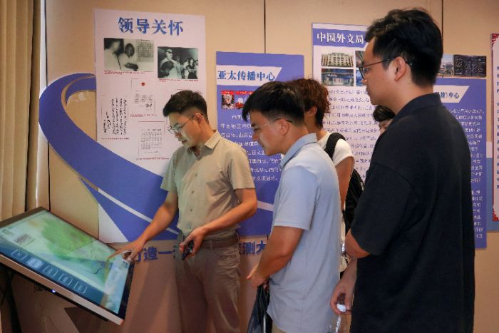 圖為團隊師生在翼然科技集團參觀學習智慧文旅領域技術。楊藝攝