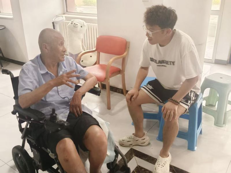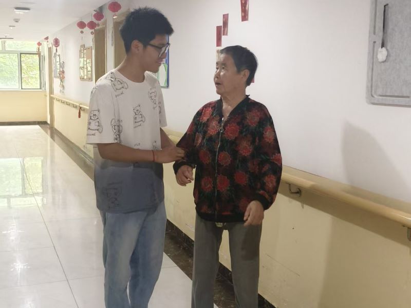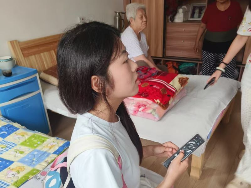 活動首日,實踐團成員帶著抹布、掃帚等工具走進老人們的房間。83歲的張奶奶行動不便,床頭柜上的藥盒、窗臺的灰塵許久未清理,成員們輕手輕腳地擦拭桌面,將散落的衣物疊放整齊,還特意把常用藥盒按服用時間依次排好。幫助奶奶調到喜歡看的電視頻道。“這孩子疊衣服比我孫女還細致。”張奶奶坐在輪椅上,看著煥然一新的房間,眼角的皺紋里盛著笑意。