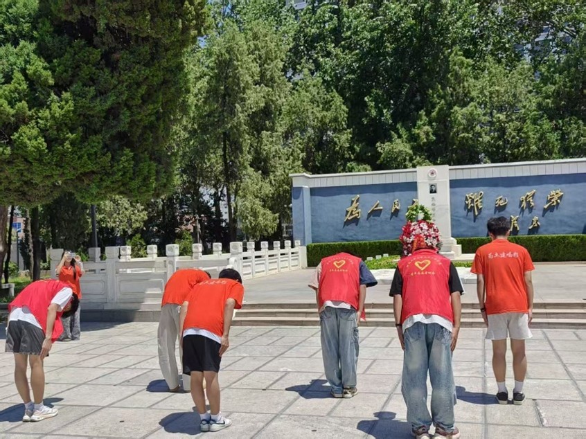 志愿服務(wù)活動期間,實踐者團隊隨后懷著無比崇敬的心情,來到焦裕祿紀(jì)念園內(nèi)的焦裕祿墓園,舉行莊重的鞠躬致敬儀式,深切緬懷這位“縣委書記的榜樣”。墓園之內(nèi),松柏蒼翠,焦裕祿同志的陵墓靜靜矗立,莊嚴(yán)肅穆。實踐者們整齊列隊,神情肅穆,在陵墓前肅立片刻。隨著實踐團隊長一聲“向焦裕祿同志三鞠躬”,全體成員深深彎腰,三次鞠躬飽含著對人民好書記的無限敬仰與追思。鞠躬禮畢,大家駐足凝視陵墓,仿佛在與這位用生命詮釋擔(dān)當(dāng)?shù)墓伯a(chǎn)黨人進(jìn)行跨越時空的對話。焦裕祿同志在蘭考的475天里,頂風(fēng)沙、冒嚴(yán)寒,身先士卒帶領(lǐng)群眾戰(zhàn)貧困、謀發(fā)展的畫面,在每個人心中愈發(fā)清晰。一位實踐者輕聲感慨:“這三鞠躬,不僅是對先烈的緬懷,更是對我們自身的鞭策——要像焦書記那樣,把群眾放在心上,把責(zé)任扛在肩上。”簡短而莊重的鞠躬儀式,是一次精神的再淬煉、初心的再叩問。實踐者們以最樸素的方式,表達(dá)著對焦裕祿同志的深切緬懷,更將這份敬意化為砥礪前行的動力,立志在新時代的實踐中傳承紅色基因,續(xù)寫擔(dān)當(dāng)篇章。