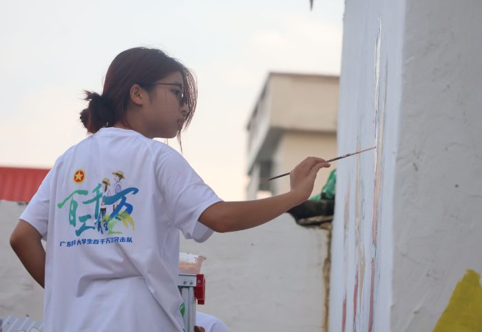 ▲圖為突擊隊成員繪畫的場景 畫筆傳情:一墻一景喚起鄉(xiāng)土共鳴 墻繪創(chuàng)作的日子里,下西村的白墻前總是圍著層層疊疊的“圍觀者”,形成一道獨特的“文化互動風(fēng)景線”。孩子們指著“笙笙”手中的刻刀,追著隊員嘰嘰喳喳提問。
