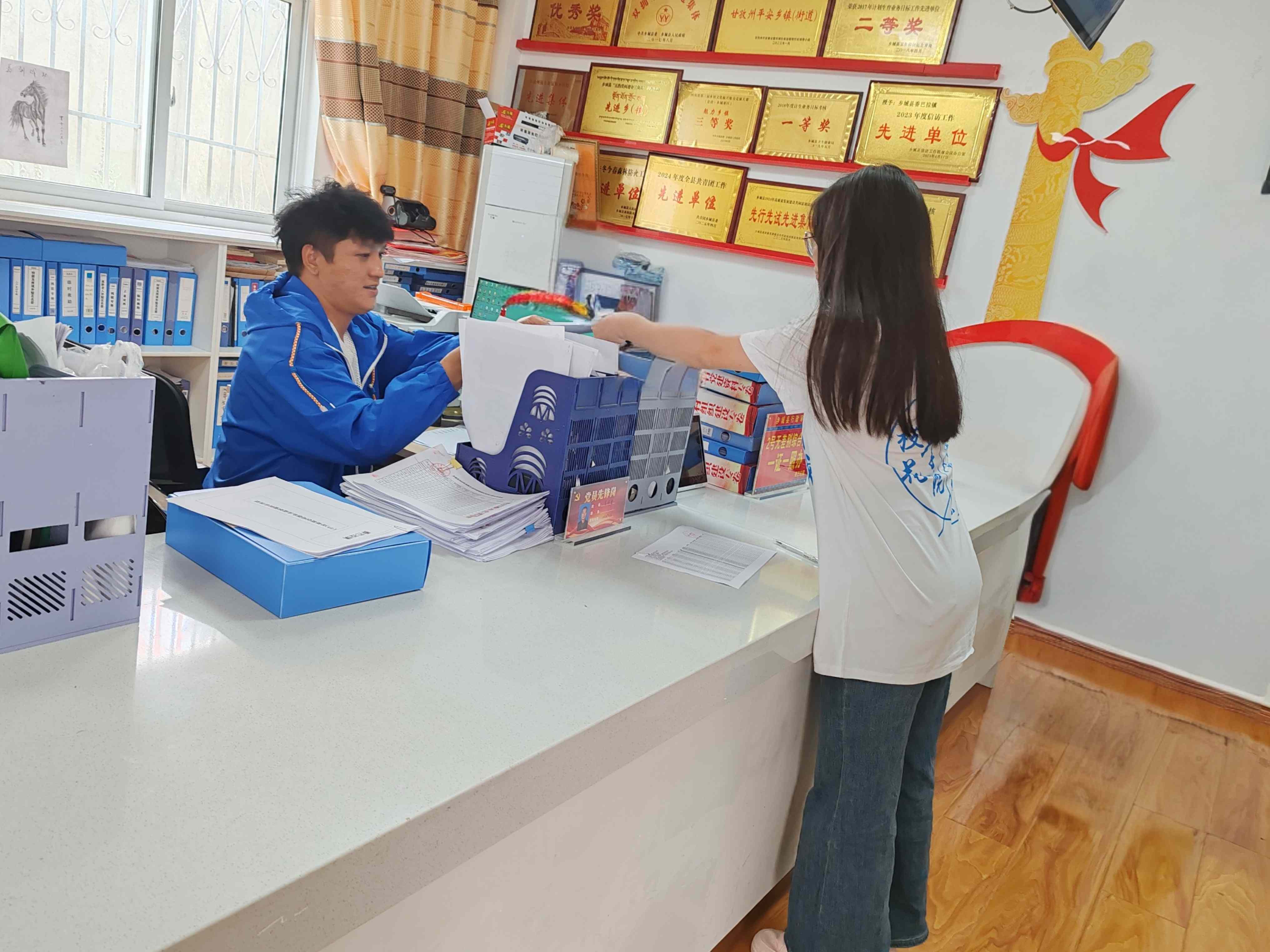 圖為香巴拉鎮人民政府工作人員填寫調查問卷。劉歆茹 供圖
