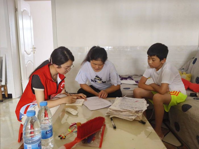 課余時(shí)間,志愿隊(duì)兵分幾路,深入石鼓鎮(zhèn),開(kāi)展入戶調(diào)研。每到一戶,志愿者既關(guān)心孩子學(xué)習(xí)生活困境,了解孩子們的具體情況、生活困境詢問(wèn)家庭是否有特殊情況,又不忘再次強(qiáng)調(diào)防溺水安全。針對(duì)孩子家長(zhǎng),尤其是居住環(huán)境周圍有水源的家庭再次展開(kāi)強(qiáng)調(diào)禁止孩子下水,敦促家長(zhǎng)注意兒童安全。在學(xué)生小劉家,志愿者了解到其父母工作在外,孩子僅由爺爺奶奶監(jiān)護(hù),暑期監(jiān)管孩子精力有限,便反復(fù)叮囑小劉:“不管天氣多熱,想玩水一定找大人陪同,別去危險(xiǎn)水域!”