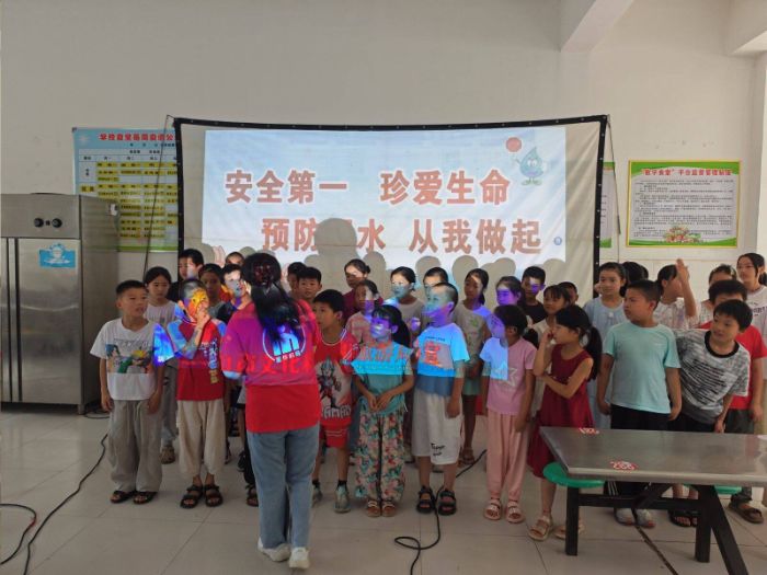 在政府牽頭下,志愿隊(duì)協(xié)助政府人員于學(xué)校食堂開(kāi)展防溺水宣傳片放映活動(dòng)。食堂里坐滿師生,當(dāng)屏幕上出現(xiàn)溺水事故畫(huà)面時(shí),不少孩子面露驚色,深刻感受到危險(xiǎn)的逼近。宣傳片從溺水原理、救援方法到真實(shí)案例警示,全方位筑牢孩子們的安全認(rèn)知。
