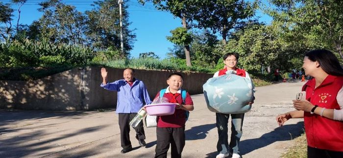 9月1日清晨,實(shí)踐隊(duì)隊(duì)員們便與學(xué)校老師一道,全身心投入到新生入學(xué)的忙碌中:幫孩子們搬桌椅、細(xì)致分發(fā)文具與生活用品,又笑著接過新生沉甸甸的行李……隊(duì)員們的身影穿梭在校園里,汗珠里映著孩子們澄澈的目光,“樂于助人”不再是書本上的概念,而是化作一個個真切的行動,讓熱忱在彼此互動間悄然傳遞。你看,隊(duì)員、家長和孩子們臉上的笑容就是最好的印證。