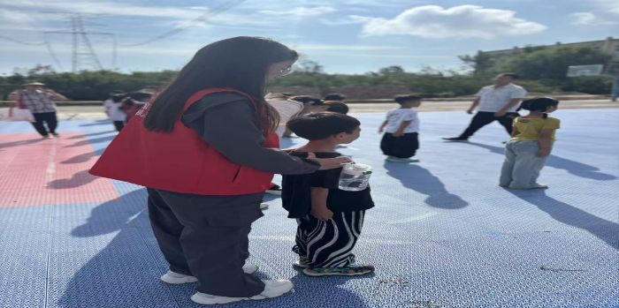 不遠(yuǎn)處,校長(zhǎng)的身影同樣溫暖:她細(xì)細(xì)為幾個(gè)孩子梳理被汗水濡濕的頭發(fā);不時(shí)對(duì)孩子們的表現(xiàn)給予鼓勵(lì)和夸贊。親昵的舉動(dòng)讓孩子們格外依賴她,一聲聲“校長(zhǎng)媽媽”在隊(duì)伍里傳開(kāi),稚嫩又飽含真情。