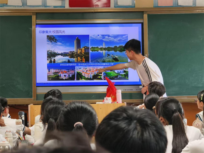 校訓石前的青春對話 實踐的最后一站,隊員們來到安溪銘選中學開展調研交流。通過參觀校園、師生座談,實踐隊深入了解這所學校在教育教學、人才培養等方面取得的成就,切身感受僑胞捐資辦學對地方教育發展的深遠影響。在班級宣講環節,實踐隊員從校園環境、特色專業、嘉庚精神傳承等角度,生動展現了集美大學的辦學特色與文化底蘊,引發了在場學子對大學生活的無限憧憬。活動期間,團隊圍繞“嘉庚精神的傳播與認知”這一主題發放問卷,并對師生進行深度訪談。這些來自教育一線的真實聲音,如同清澈的明鏡,映照出嘉庚精神在新時代教育沃土中生根發芽、枝繁葉茂的生動圖景。