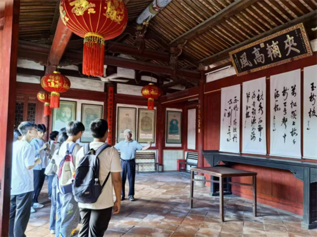 感悟清廉之風 此后,實踐隊走進安溪縣湖頭鎮,參觀清代名臣李光地故居新衙昌佑堂。在其第十一代孫的講解下,隊員們通過“三賜御匾”及《家訓·諭兒》,學習李光地清廉治世、修身齊家的儒家風范。其家風與嘉庚精神“公而忘私”的內涵相呼應,讓隊員們深刻理解嘉庚精神對傳統文化的傳承與升華,立志以先賢為榜樣,汲取精神力量,厚植家國情懷。