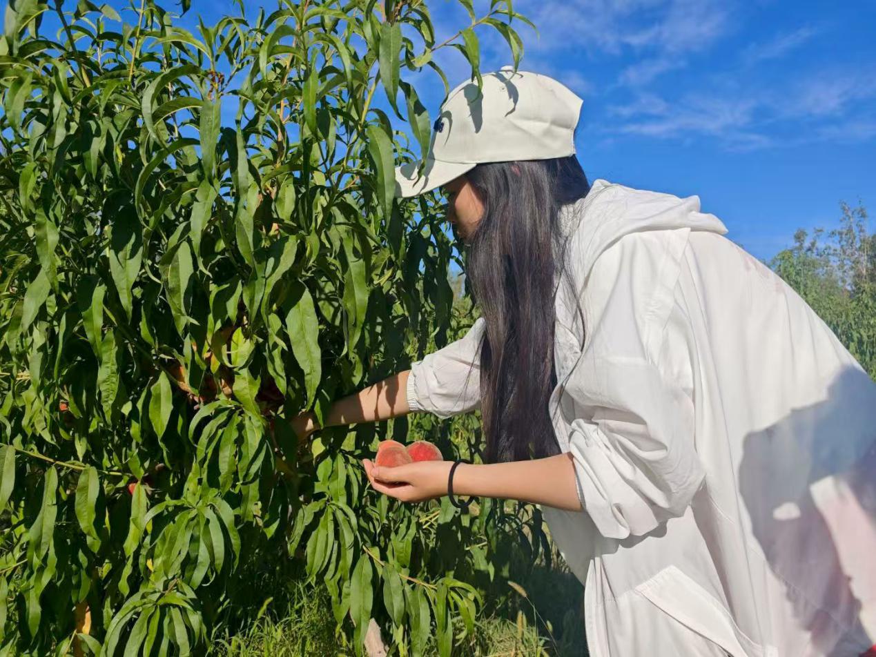 實踐期間,恰逢小白杏與血桃的成熟采收季。在農(nóng)場技術(shù)人員的專業(yè)指導(dǎo)下,實踐團成員深入果園,學(xué)習(xí)并參與了果實的采摘工作。從枝頭摘下飽滿的小白杏與緋紅的血桃,隊員們親身體驗了豐收的喜悅,更深刻感受到每一顆甘甜果實都凝結(jié)著果農(nóng)日復(fù)一日的辛勤勞作與精心管護