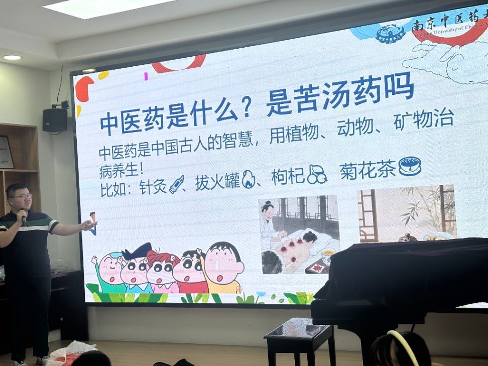 問答啟智:識藥知效,初窺岐黃奧秘 活動伊始,“虹”愿揚帆志愿團成員以趣味問答拉開序幕,用“大家眼中的中醫藥是什么樣子?”這一充滿啟發性的問題點燃全場熱情。孩子們高舉小手,眼神中閃爍著好奇與期待,在歡快互動中正式開啟中醫藥探索之旅。從補血養顏的大棗到清熱解毒的金銀花,從健脾開胃的山楂到疏風散熱的薄荷,志愿者們結合《本草綱目》典籍記載,不僅詳細講解每種藥材的功效,還現場展示大棗補血養顏的食療方、金銀花泡水的清熱功效,并生動講述山楂消食化積的歷史典故。在生動有趣的講解中,一個個藥草小知識如春雨般滋潤著孩子們的心田,播下好奇與探索的種子,讓博大精深的中醫藥文化不再是書本上的鉛字,而成為觸手可及的生活智慧。