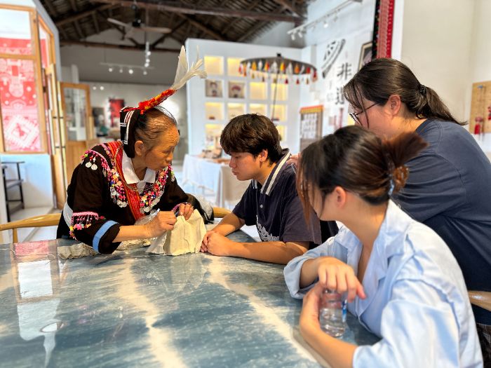 走進(jìn)中國(guó)瑤族博物館:觸摸瑤族非遺的千年脈絡(luò) 在連南中國(guó)瑤族博物館內(nèi),“匠心筑夢(mèng)團(tuán)” 成員沉浸式學(xué)習(xí)瑤族非遺文化體系。館內(nèi)陳列的瑤族服飾、銀飾鍛造、歌謠樂(lè)譜等文物,系統(tǒng)展現(xiàn)了瑤族織染、刺繡、歌舞等非遺技藝的歷史淵源。團(tuán)隊(duì)成員通過(guò)講解員的解讀,深入了解瑤族 “耍歌堂”“長(zhǎng)鼓舞” 等國(guó)家級(jí)非遺項(xiàng)目的文化內(nèi)涵,以及連南作為瑤族文化生態(tài)保護(hù)區(qū)的獨(dú)特價(jià)值。此次沉浸式學(xué)習(xí),讓團(tuán)隊(duì)成員在文物與講解的雙向熏陶中,觸摸到瑤族非遺文化的厚重底蘊(yùn),也讓傳承非遺技藝、守護(hù)文化根脈的使命在實(shí)踐中愈發(fā)清晰。