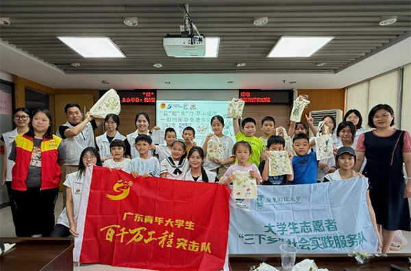 為弘揚非物質文化遺產,推動傳統植物拓染技藝的傳承與發展,探索社區嵌入式非遺文化傳承創新模式,2025年7月11日,廣東財經大學莞蘊新輝實踐團走進東莞市莞城街道創業社區,在莞城街道團工委、莞城創業社區的支持和指導下,成功舉辦“‘益’起‘童’行·草木成畫——植物拓染非遺體驗課堂”活動。此次活動采用“學習—實踐—傳承”模式,向社區青少年普及植物拓染技藝,助力非遺文化的活態傳承與發展。