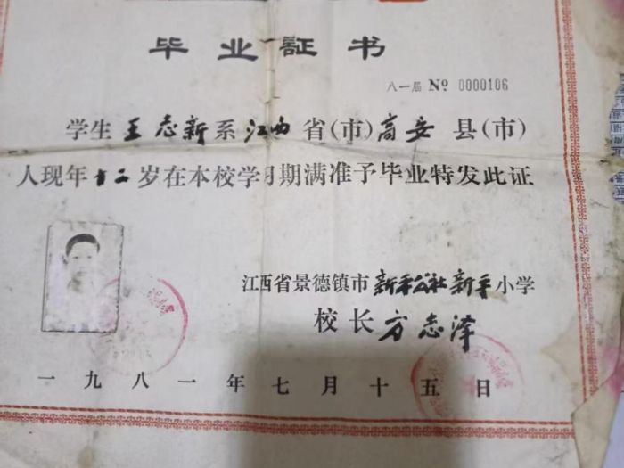 圖為王書記的小學(xué)畢業(yè)證何麗靈攝