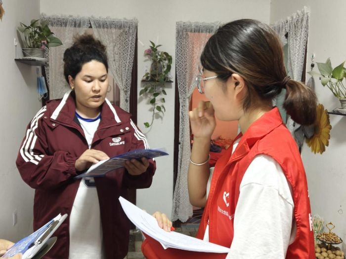 十點,太陽開始發(fā)威,他們把兩張折疊桌搬到廠區(qū)梧桐樹下。樹影斑駁,蟬聲拉長了時間。問卷一張一張傳下去,筆跡或深或淺:95% 的人知道“垃圾分類”,卻只有 47% 能準確說出“電池該去哪兒”;83% 的家庭會把紙箱壓扁疊好,但仍有 39% 把廚余和塑料袋一起系緊;一位維吾爾族大哥在“廢舊燈管”那一欄畫了三個問號,抬頭問他們:“燈管不是玻璃嗎?為啥還要單獨收?”他們沒急著解釋,而是把問題抄在便利貼上,積累在一塊,像一面“不懂就問”的墻。中午,幾個工人哼著歌路過,順手把喝完的礦泉水瓶投進我們帶來的藍色回收筐。筐子漸漸滿了,團隊成員的心也一點點亮起來。