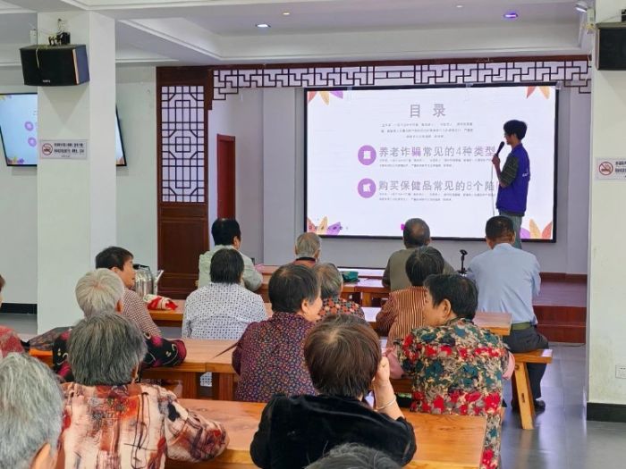 6月23日,東吳村老年日間照料中心內氣氛熱烈。面對早早守候在桌前的老人,團隊精心準備了兩場“護老”講座。首場聚焦反詐,系統揭露了養老詐騙的四大典型陷阱及保健品購買的八大常見套路,切實提升了老人們的防范意識與自我保護能力。