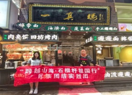圖為實踐團成員與回民村店主合影 張正升攝
