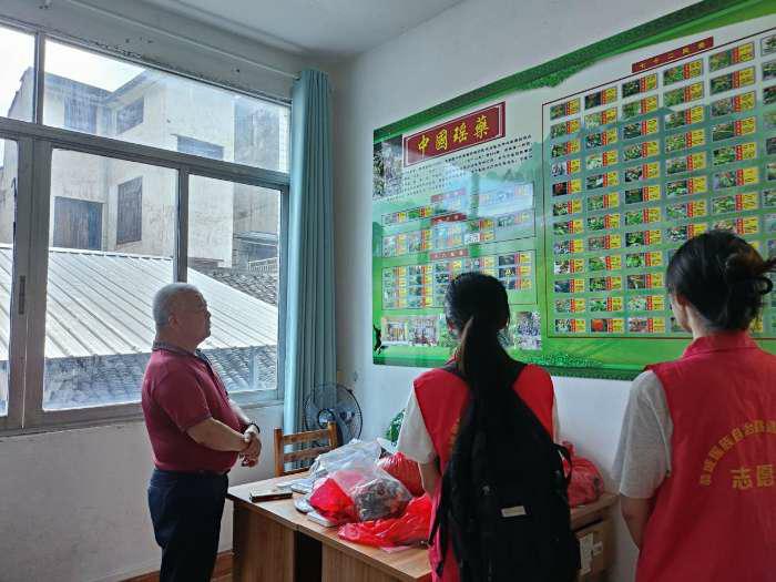 圖為非遺婆王瑤醫傳承人周桂名老師為實踐隊成員展示婆王瑤藥的藥用價值。黃思瑩 黃希維 供圖