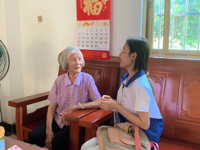 尋訪老黨員,承志繪新篇。15:30,調研組隊員赴黨群服務中心開展思政資源調研并拜訪了老黨員,聆聽初心故事,汲取奮進力量。支委委員、村委委員陳森超在訪談中指出,“老黨員講的白話比較老,和年輕人交流分享有語言方面的障礙。老黨員年紀比較大,走動進行宣講也不方便。”強調了本地紅色教育面臨教育資源分散、語言代際障礙等問題。基于此,陳森超委員表達了“愿為青少年講述紅色故事”的強烈意愿。在與另一位老黨員的交談中,老黨員雖年事已高,但精神矍鑠,回憶起崢嶸歲月,目光依然堅定。他們用最樸實的語言——“為人民服務”——詮釋了入黨的初心與一生堅守的信仰。這份歷經歲月洗禮而毫不動搖的忠誠,如同一次跨越時空的歷史鳴鐘,在每一位調研隊員的心湖中蕩起了層層波瀾,深刻感受到了理想信念的強大力量。
