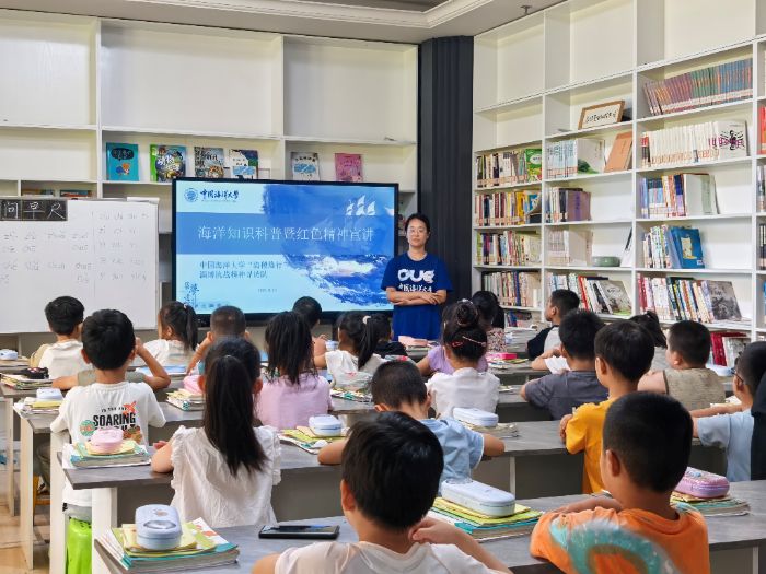 帶著對紅色精神的深刻感悟,隊員們來到棠悅社區開展海洋知識科普暨紅色精神宣講,以淄博大地為立體史冊,向孩子們展開雙重視角:從齊都臨淄的“海岱雄風”,到魯中抗戰的烽火硝煙,千年文脈與紅色基因在這片土地層層積淀;生命學子將專業化作啟蒙鑰匙,在貝殼紋路中解讀潮汐密碼,用思想引領“紅”的底色和海洋生命“藍”的特色為孩子們種下一顆“海洋強國夢”的種子。