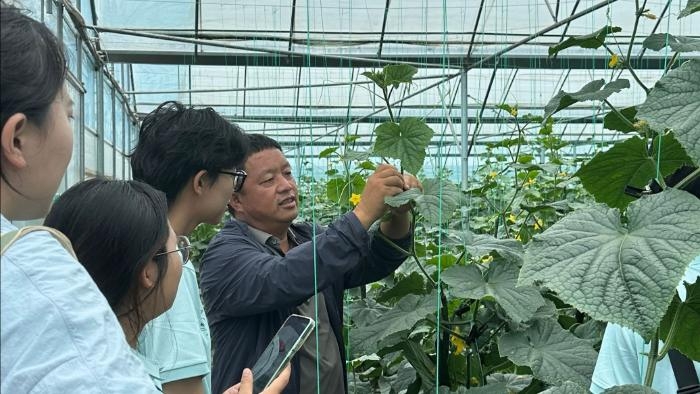 實(shí)踐隊(duì)深入徐屯村千畝有機(jī)黃瓜大棚,向農(nóng)技人員學(xué)習(xí)“疏花疏果”技術(shù)和采后預(yù)冷保鮮技術(shù),觀摩水肥一體化設(shè)備調(diào)控大棚環(huán)境養(yǎng)分,親手體驗(yàn)“看色澤、辨長度、輕采摘”的標(biāo)準(zhǔn)化采摘流程。據(jù)了解,科技農(nóng)業(yè)帶動(dòng)該產(chǎn)業(yè)年產(chǎn)值超千萬元。在非遺火腿產(chǎn)業(yè)方面,隊(duì)員們探尋傳統(tǒng)工藝與現(xiàn)代創(chuàng)新的融合——從博覽館的文化積淀到企業(yè)智能化發(fā)酵技術(shù)及設(shè)備的應(yīng)用,老手藝煥發(fā)新生機(jī),成為鄉(xiāng)村振興的致富引擎。