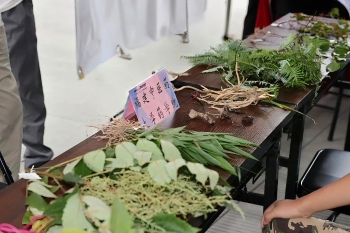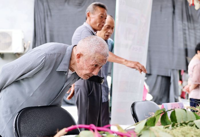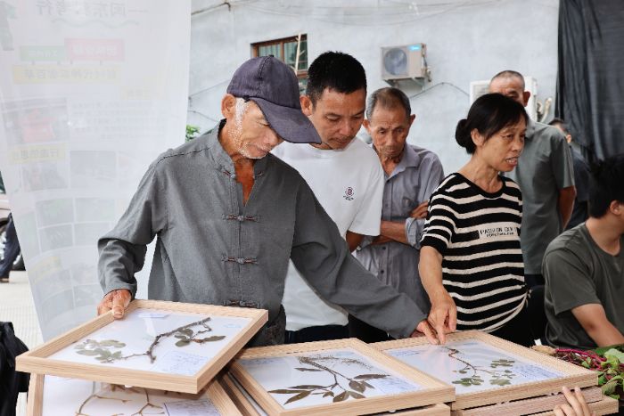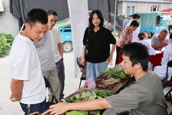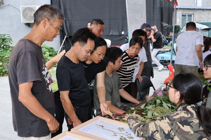 活動當天,盡管烈日高懸,氣溫居高不下,但西陽村村民們的參與熱情絲毫不減。大家紛紛圍在藥材展示區周圍,或認真聆聽隊員講解,或拿起藥用植物仔細觀察,或主動與隊員、鄰里交流互動。期間,不少村民主動分享起代代相傳的民間用藥智慧:“萱草根我們這邊叫金針根,搗爛外敷可以解毒消腫”,“鹽膚木春天的嫩芽能涼拌吃,不僅爽口還能清熱”,“山上的芒萁嚼碎了敷在小傷口上,止血效果特別好”……這些源于生活實踐的鮮活經驗,不僅生動展現了民間醫藥文化的實用價值,也讓科考隊隊員們收獲了書本之外的“知識養分”,真正實現了“隊員科普、村民傳智”的雙向學習、雙向賦能。
