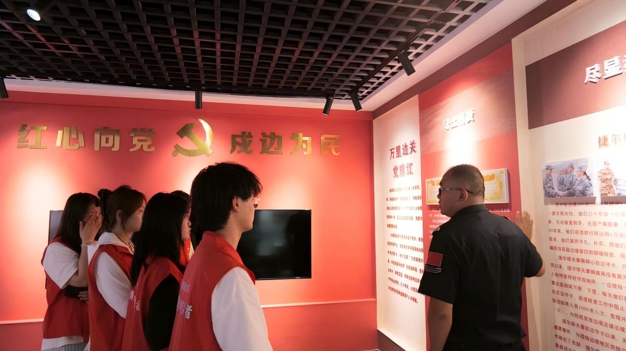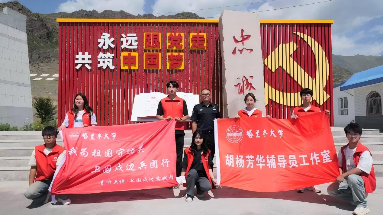 圖為實(shí)踐團(tuán)成員在八十四團(tuán)烏圖布拉格邊境警務(wù)站與站長(zhǎng)合影 (攝/李鑫)