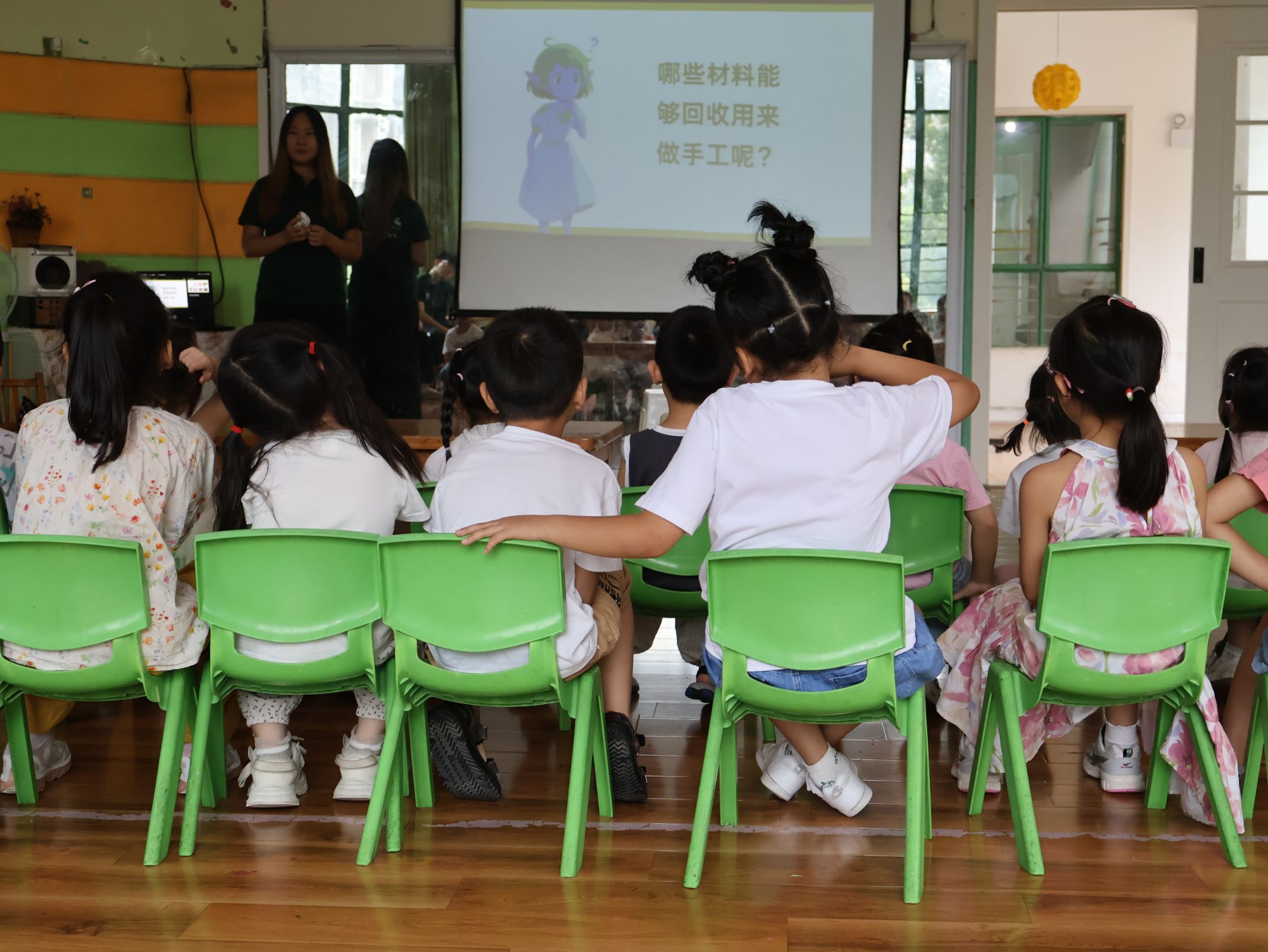 本次主題為“變廢為寶,綠動未來”的手工課聚焦環保實踐。活動伊始,老師首先用生動的語言和圖片,深入淺出地講解了當前的環境問題、垃圾分類的重要原則以及資源循環利用的積極意義,在孩子們心中播撒下綠色的種子。