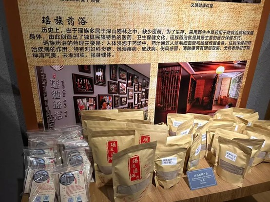 在藥浴專題區,1:1復原的瑤家浴房生動展示"三天出工,一天泡湯"的養生傳統。竹篾浴盆旁陳列著72味經典浴方,按"產后三泡"、"祛痧五湯"等癥候分類。團隊成員對比發現:吳章云傳承的刮痧配浴療法,正源自展品中清代《痧浴合治圖》記載的"刮通經絡,藥隨痧入"原理。而今這些古老智慧已轉化為現代藥浴包,年產量超200萬袋。
