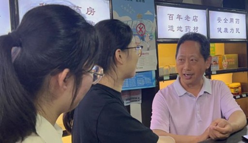 嚴土根醫生是墻御醫胡維勤親傳弟子。踏入百年老號同德仁堂,時光仿佛在此沉淀。嚴土根醫生對各種藥材如數家珍,他耐心向隊員們講述自己少年時在藥香中浸染的學藝歲月。嚴醫生守護的不僅是店鋪,更是新安醫藥“道地藥材、遵古炮制”的金字招牌。