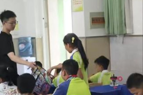 在小學(xué)課堂中,實(shí)踐團(tuán)成員通過輕松的小游戲與孩子們拉近距離,介紹了眼睛的基本結(jié)構(gòu)和日常保護(hù)的重要性,巧妙地將話題引向博大精深的中醫(yī)藥護(hù)眼智慧。互動環(huán)節(jié)中,隊(duì)員們分發(fā)了精心制作的中式護(hù)眼宣傳冊,并結(jié)合內(nèi)容進(jìn)行生動講解,穿插有獎問答,現(xiàn)場氣氛熱烈。