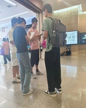 觀眾互動的觀察與問卷實踐 在參觀過程中,隊員們留意到該展區(qū)吸引了不少對中醫(yī)藥感興趣的觀眾。一些中老年參觀者在《女科》展柜前駐足良久,也有年輕父母帶著孩子,指著“精氣神”大字講解中醫(yī)養(yǎng)生理念。這種不同代際的關注,印證了傅山醫(yī)學在民間的認知基礎與實用吸引力。基于此觀察,下午,團隊成員在博物院公共區(qū)域開展了問卷調查。隊員們結合展陳內容設計問題,重點了解公眾對傅山醫(yī)學的知曉度、認知來源、是否接觸過傅山女科方劑以及對中醫(yī)藥文化傳承的態(tài)度。