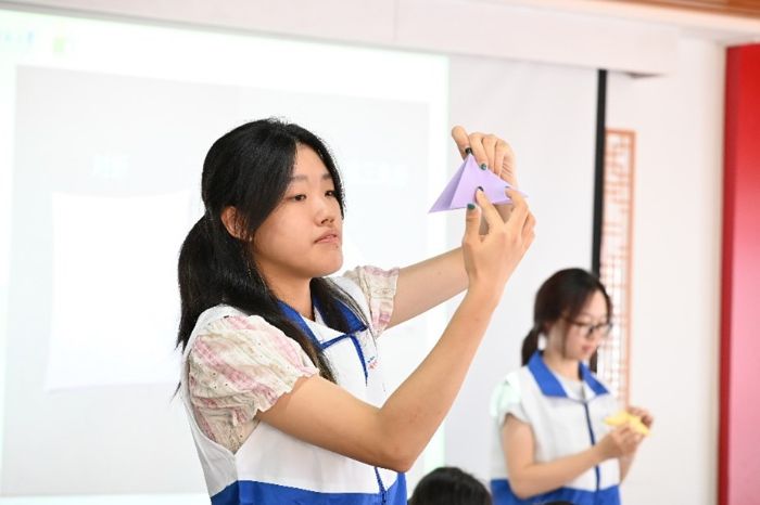 圖為唐韻老師正在展示如何折玫瑰 盧冰倩攝。